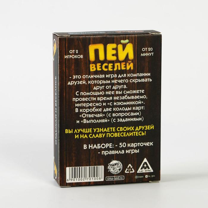 Купить игра для компании "пей веселей" 50 карт от 180 руб. с доставкой до пункта выдачи в Белинском. Интернет магазин ДекаМаркет. Оплата при получении.