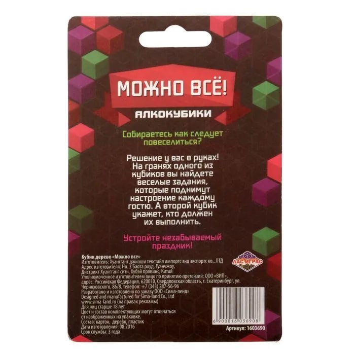 Купить кубик "можно все", алкокубики для принятия решений от 60 руб. с доставкой до пункта выдачи в Белинском. Интернет магазин ДекаМаркет. Оплата при получении.